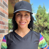 Our Wild Rose embroidered, athletic cap can be paired with any of our UPF50+ V-Necks, and/or neck gaiters.