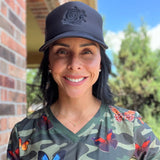 Our Wild Rose embroidered trucker hats can be paired with any of our UPF50+ V-Necks, and/or neck gaiters.
