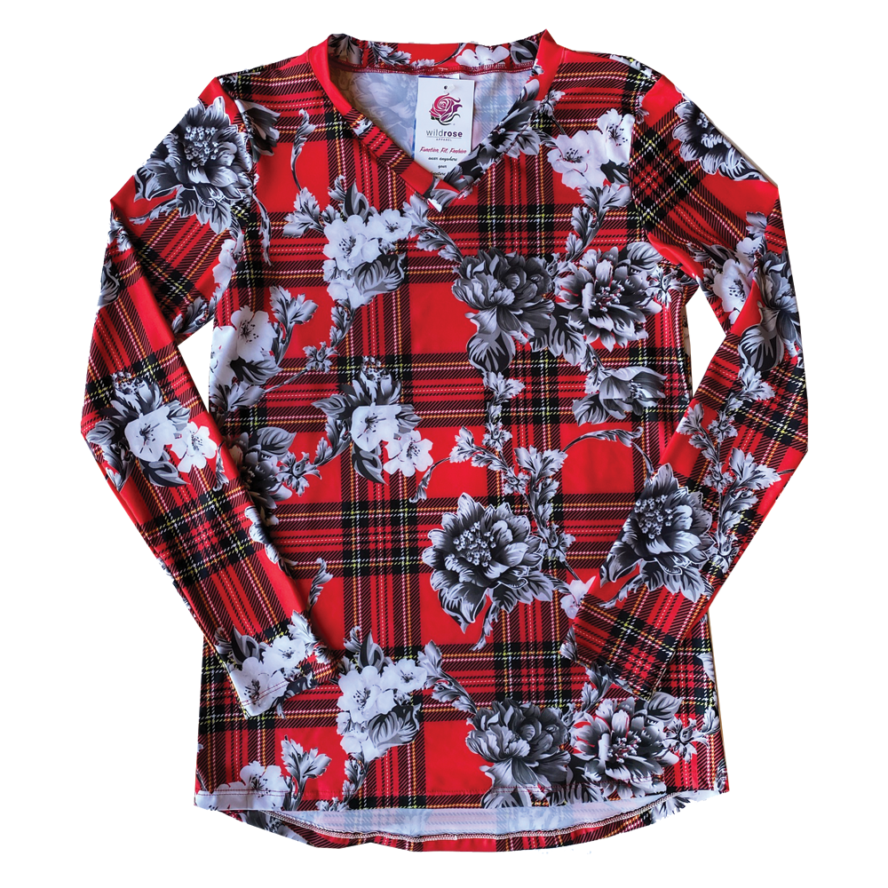 Whether you're fishing, shooting, running, hiking, going to the gym, or just hanging out, the Wild Rose Buffalo Plaid top is sure to make a statement.