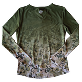 The Wild Rose Original Rose Camo® Long Sleeve UPF shirt features a fading green design and is made of a lightweight UPF50+ poly lycra blend. Smooth and cool to the touch, this stretchy relaxed-fitting shirt is comfortable and stylish. Wear it as sun-protective Summer wear or as a base layer in the cold winter months. By combining functional performance material with our fashionable Wild Rose Original Camo®, this shirt will transition with you throughout the day no matter what adventure awaits!