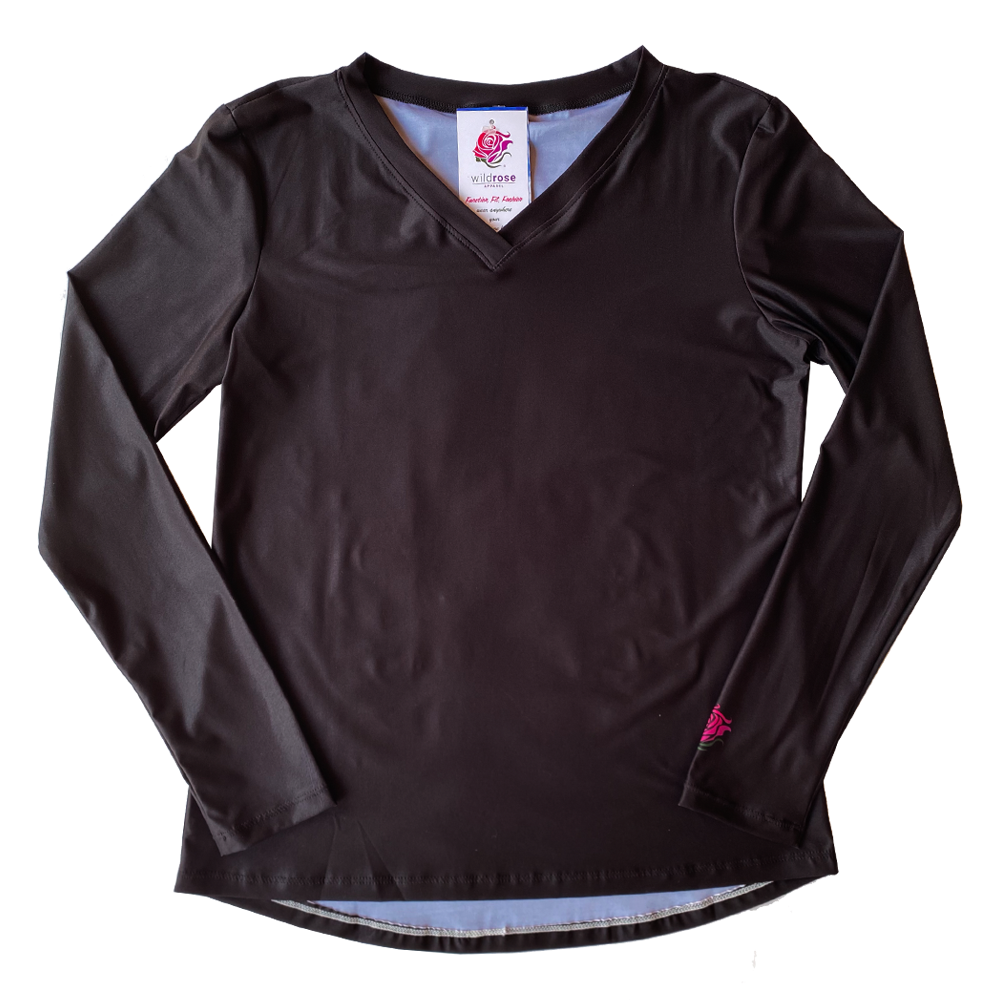 The Wild Rose Midnight long sleeve shirt is made of a lightweight UPF50+ poly lycra blend. Smooth and cool to the touch, this stretchy semi-relaxed fitting shirt is comfortable and stylish. Wear as sun-protective Summer wear, or as a base layer in the cold winter months. By combining functional performance material with this trendy print, this shirt will transition with you throughout the day no matter what adventure awaits!